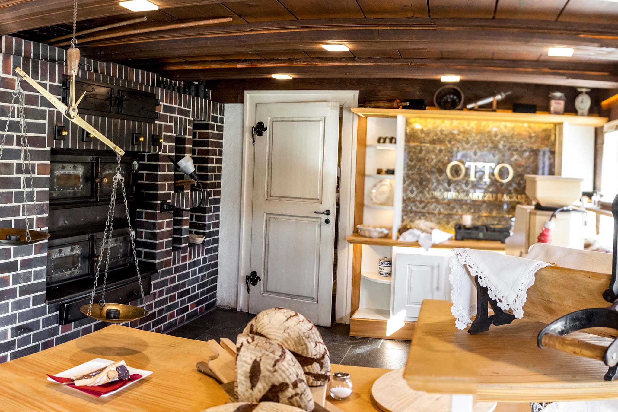 In der Blockstube unserer Bäckerei bietet Ihnen handwerkliche Tradition einen erlebenswerten „Hotspot“: unser altdeutscher Holzbackofen. In dem wird wie schon vor Jahrhunderten üblich gebacken. Zum Beispiel bis zu vierpfündige Großbrote mit selbst gezogenem Natursauerteig. Beheizt mit Nadelholz, ist diese Backweise sehr arbeitsintensiv – bringt aber dank hoher Anbacktemperatur und milder Strahlungshitze ein einzigartiges Aroma hervor.